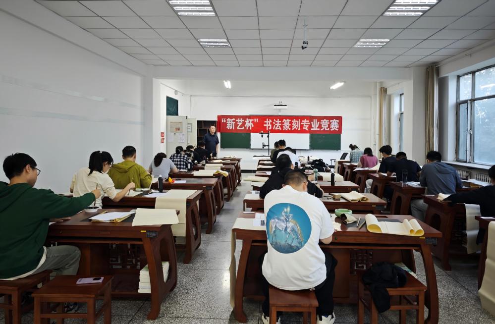 2025年9月11日,书法学院成功组织举办了首届“新艺杯”书法篆刻专业竞赛。本次竞赛紧紧围绕庆祝中国共产党成立104周年和庆祝新疆维吾尔自治区成立70周年主题,通过书法篆刻艺术传承红色基因,弘扬中华优秀传统文化。