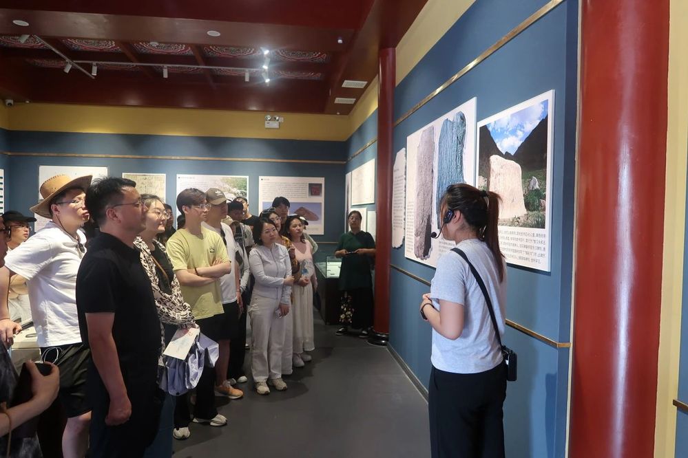 哈密博物馆目前开放自然与地质、古代文明两个展厅。在自然与地质展厅里,大家短暂地体会了“飞向白垩纪”哈密翼龙之旅。其中,与天山哈密翼龙一同生存的中国丝路巨龙令同学们十分震撼,它保存了六节关联在一起的颈椎,长度是3米左右,据解说人员介绍,保守估计它的总体长度超过了20米。在了解到翼龙生存繁衍至最终灭绝的过程后,同学们有点惋惜的同时也纷纷感慨科考人员的伟大。进入古代文明展厅里,大家了解到哈密地貌是由四山夹三盆组成,正因为其独特的地理位置,哈密在历代中央王朝经营西域、稳固边疆的历史进程中发挥着不可替代的作用,所以这里遗留下了许多具有重要历史价值的碑刻。新疆发现4块汉代碑刻,其中有3块都在哈密,分别是《任尚碑》《东汉裴岑纪功碑》以及《焕彩沟碑》。这些碑刻记载了汉政府经略西域,为维护国家统一进行的历次军事斗争的事实,是有效管辖和治理西域的宝贵实物资料,更是新疆自古以来就是中国领土不可分割的一部分的实物见证。无论是汉晋隋唐,还是宋元明清,哈密始终是多文化并存、多民族聚居之地,在哈密博物馆的历史陈列中,新疆艺术学院书法学院师生一行领略了这片神奇土地的历史和各族人民共同铸就的辉煌。