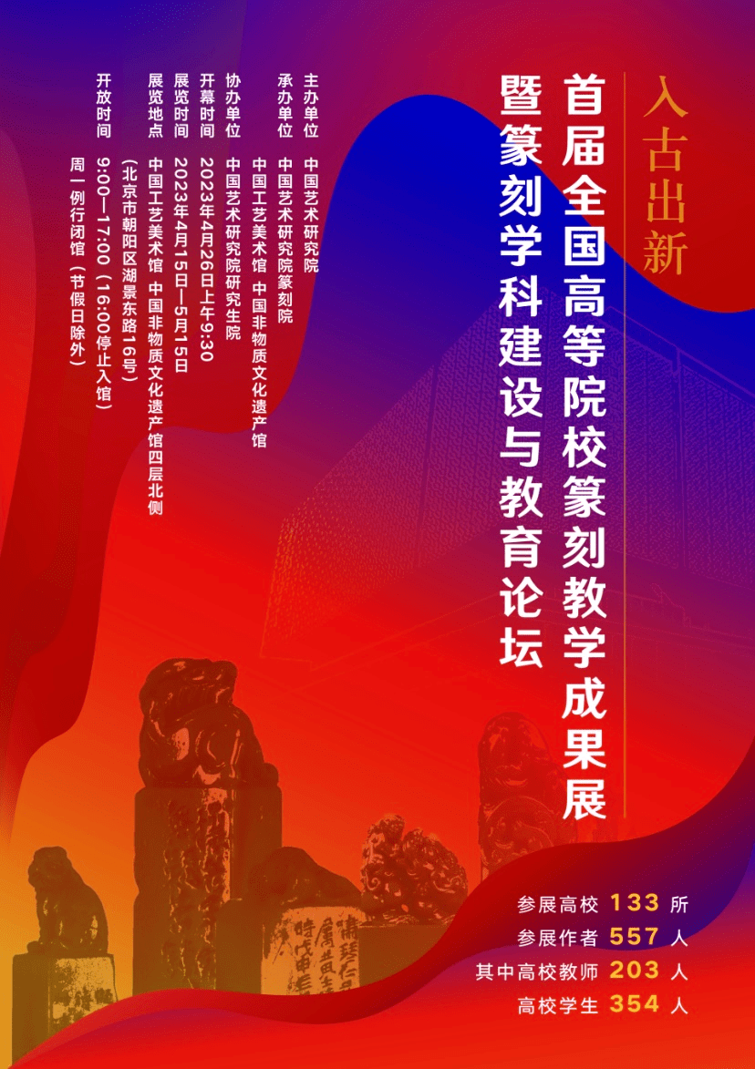 为了传承、保护和发展中国优秀的传统艺术中国篆刻,总结并归纳当代篆刻学科建设的经验成果及其存在的问题,由中国艺术研究院主办,中国艺术研究院篆刻院、中国工艺美术馆中国非物质文化遗产馆承办,中国艺术研究院研究生院协办的入古出新——首届全国高等院校篆刻教学成果展暨篆刻学科建设与教育论坛,4月26日在中国工艺美术馆中国非物质文化遗产馆拉开帷幕。