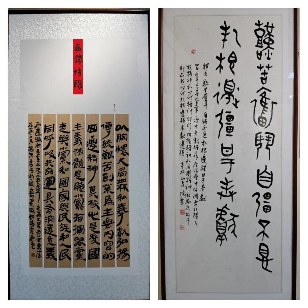 学校党委书记章立新在开幕式致辞中说:“在革命、建设、改革、复兴的壮阔征程上,一大批英模人物顽强奋斗、忘我奉献,形成了井冈山精神、长征精神、延安精神、西柏坡精神、抗美援朝精神、‘两弹一星’精神、抗疫精神等伟大精神,构筑起了中国共产党人的精神谱系。中国共产党人的伟大精神,铸就了中国特色社会主义道路自信、理论自信、制度自信、文化自信,筑牢了中国共产党人的信仰之基。”本次书法展以书法学院师生为主体,邀请部分新疆书法名家以共产党人的精神谱系为主题,创作了56幅精神内涵与图片史料结合的作品,展览主题鲜明,书体丰富,形式多样,图文并茂,别开生面,生动阐释了共产党人的精神谱系。
