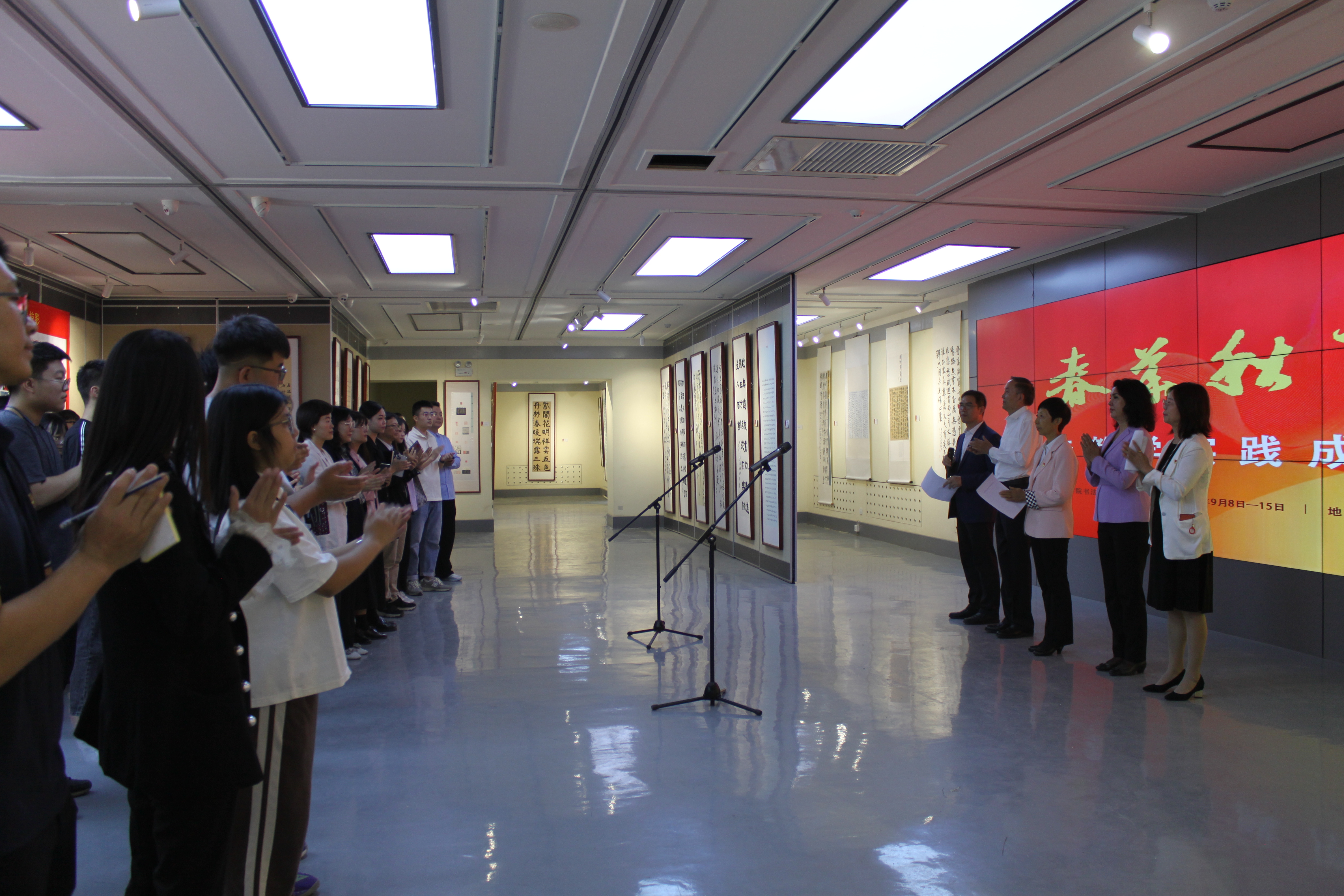 新疆艺术学院党委副书记樊文平宣布展览开幕,副院长木亚赛尔·托乎提,党委常委、统战部长斯尔哈孜•布兰拜出席开幕式,学校有关处室负责人和同学参加了开幕式。书法学院党委书记李琼瑶致辞,活动由书法学院院长李枝荣主持。