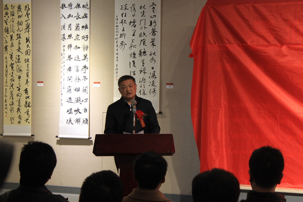 新疆维吾尔自治区文学艺术界联合会党组成员、副主席熊红久,新疆艺术学院副院长木亚赛尔・托乎提出席开幕式并讲话;乌鲁木齐市文联党组书记、副主席刘清,新疆书法家协会副主席田旭军、马亚飞、陈黎、陈伯阳,新疆青年书法家协会主席孙涛,新疆艺术学院书法学院教授、新疆书法教育研究院院长王研充等领导嘉宾以及来自自治区文联、高校、书法界的专家学者参加了开幕式。开幕式由新疆艺术学院书法学院副院长仲嘉亮主持。