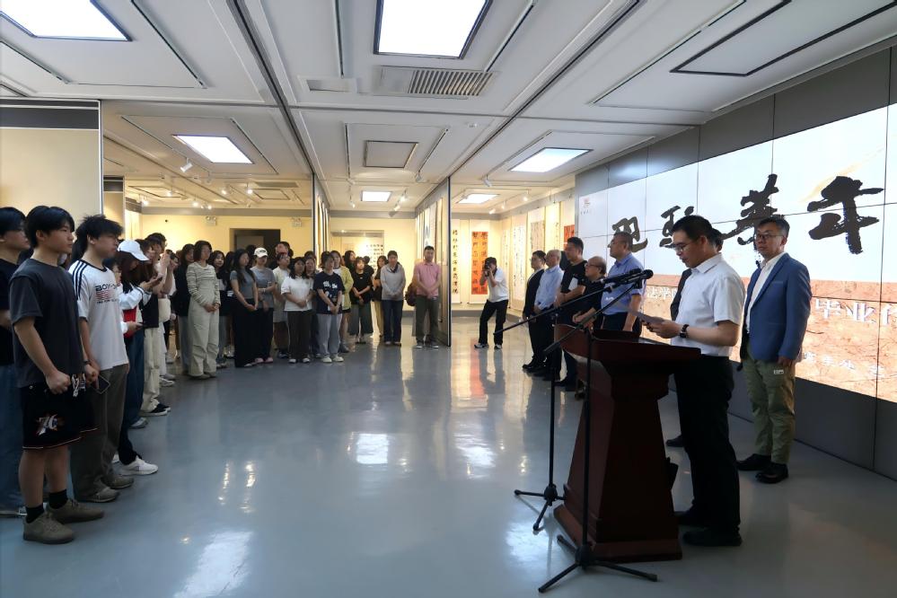 闵荫南先生感慨于同学们在书法技艺与艺术素养方面取得的优异成绩,并鼓励毕业生们以此次展览为崭新起点,在书法之路上行稳致远,用毛笔书写古人胸怀,书写我幸福向往。