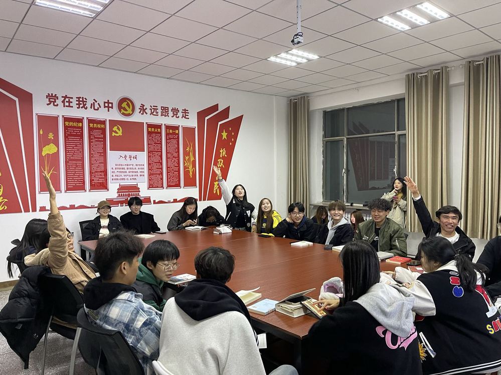 活动在主持人梁睿熙的介绍下拉开帷幕,书籍分享环节同学们踊跃发言,19名学生分享了自己近期阅读的政治法律、文学名著、历史地理等各类书籍,如《民法典》《乡土中国》《活着》《第二次世界大战全史》等,在分享中交流读书心得与感悟,朗诵书中最喜欢的一段文字,让思想的火花在这里碰撞。随后的游戏“飞花令”环节,同学们以诗会友,围绕“凤”“雨”两字展开激烈角逐。一句句优美的诗词脱口而出,现场气氛热烈,充分展现了同学们深厚的诗词功底。诗词接龙环节同样精彩不断,从经典诗词到冷门佳句,大家你追我赶,不甘落后。