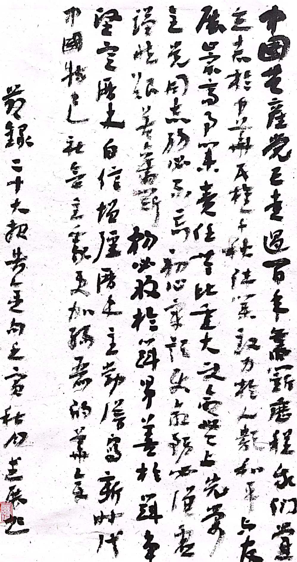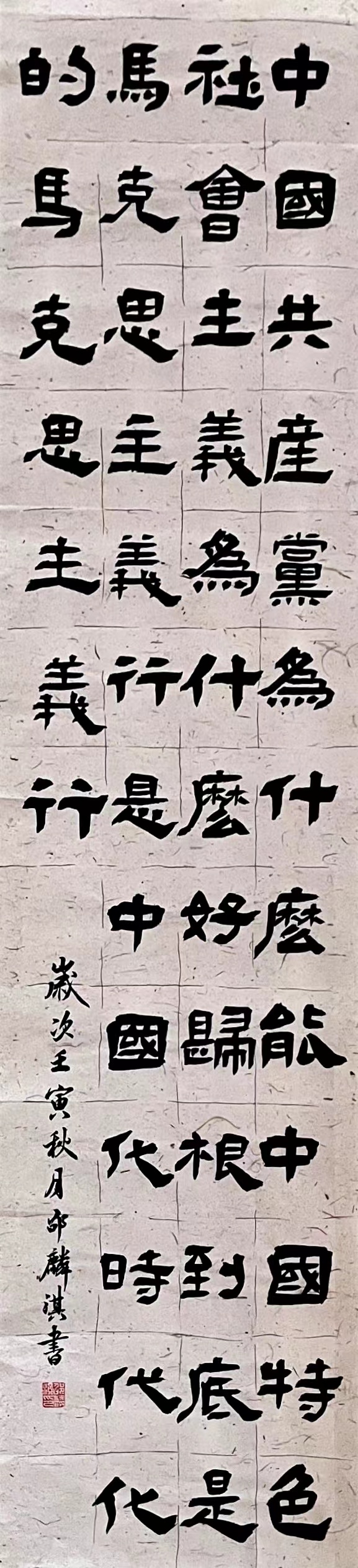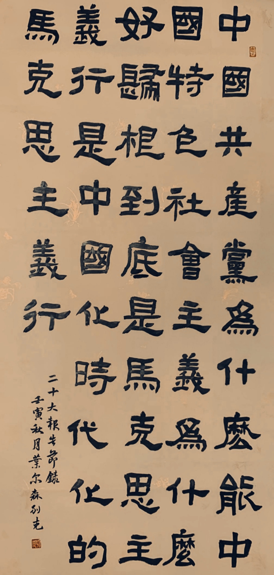 作品释文:中国共产党为什么能,中国特色社会主义为什么好,归根到底是马克思主义行,是中国化时代化的马克思主义行。