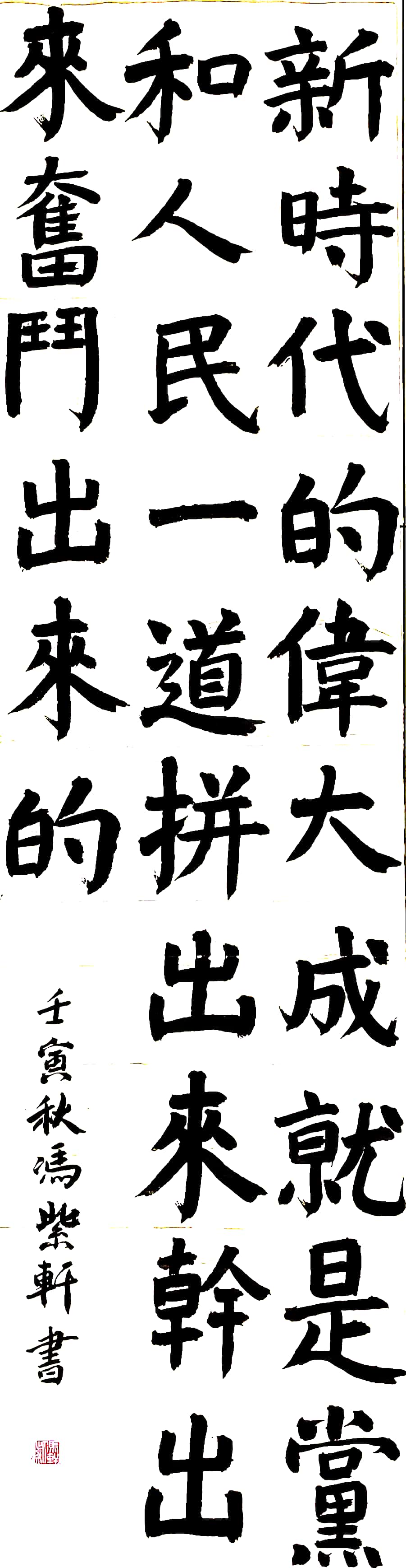 作品释文:新时代的伟大成就是党和人民一道拼出来、 干出来、奋斗出来的!