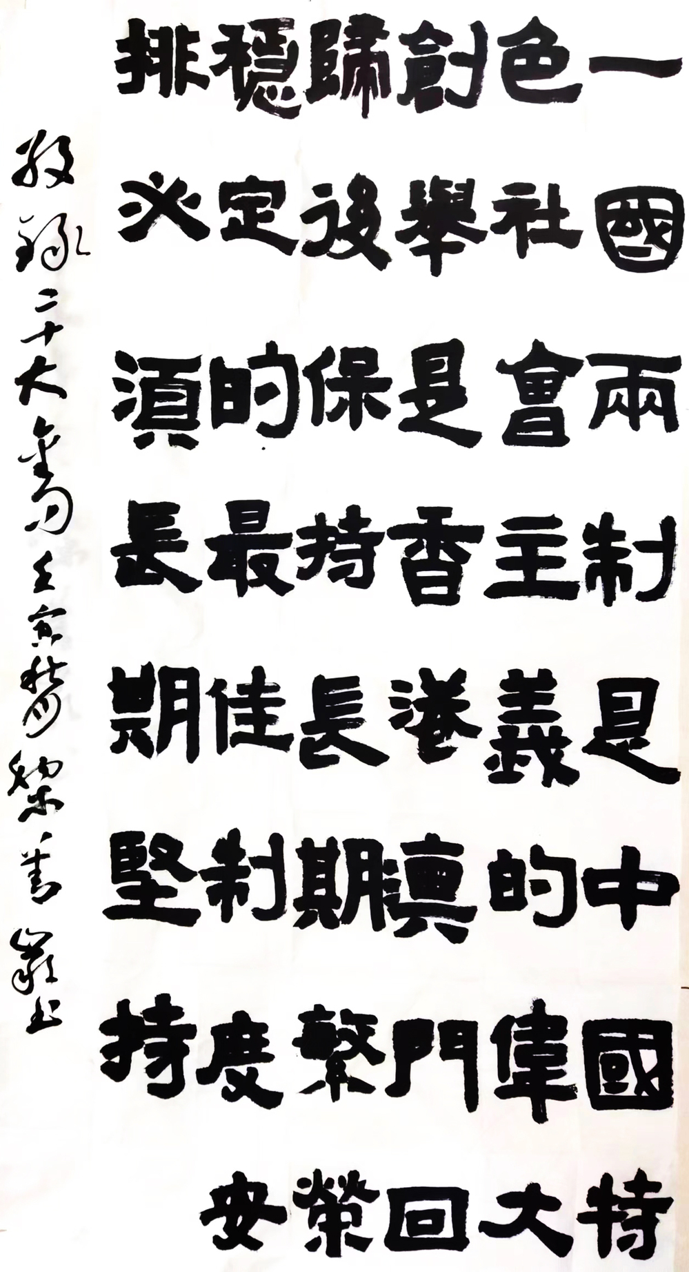 作品释文:“一国两制”是中国特色社会主义的伟大创举,是香港、澳门回归后保持长期繁荣稳定的最佳制度安排,必须长期坚持。
