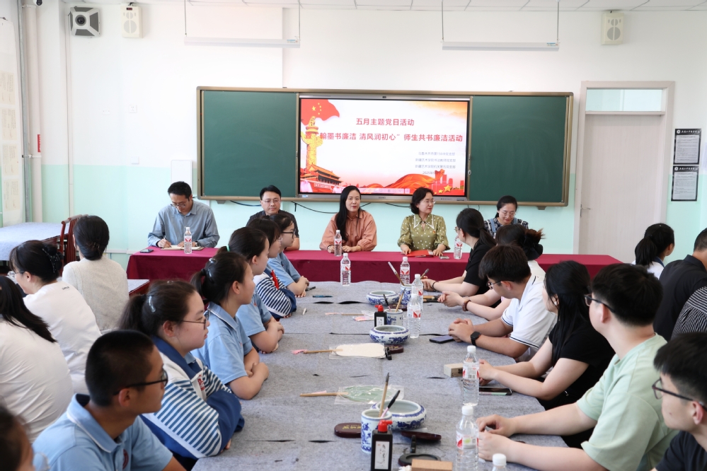 5月15日下午,新疆艺术学院书法学院教师党支部、学生党支部联合机关第五党支部,与新疆生产建设兵团第二中学(经开校区)师生,在该校小学部三楼书法教室共同举办“翰墨书廉洁·清风润初心”主题党日活动。活动将书法艺术与廉洁文化深度融合,为清廉校园建设增添艺术活力。